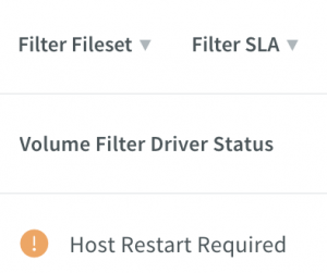 The host will show a status of “Connected.” You will need to install the Volume Filter Driver (VFD) to enable the cluster to track changes to the blocks as well as assist with the performance of the incremental backups. Select the host you want to install the VFD on and click the 3 dots in the top right corner -> Select Install VFD -> Wait until the Volume Filter Driver Status changes to “Host Restart Required” and reboot the host. (Refresh the UI if you don’t see it update after some time.)
